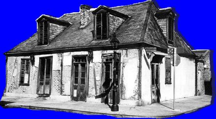 Jean Lafitte's Blacksmith shop in New Orleans ( a front for smuggling ) , now a bar .