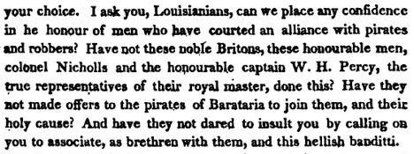 Jackson was suspicious of Lafitte, and regarded him as a criminal as can be seen in part of a proclamation of Sept 21, 1814. It took convincing by Livingston to convince him otherwise. When Jackson meet Laffite, he was impressed.