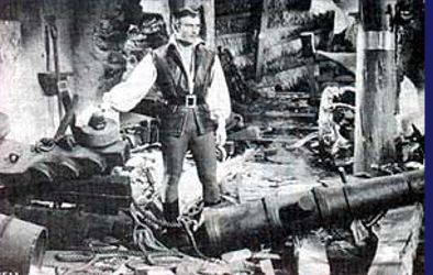 The destruction of Lafitte's fort on Grande Terre from The Buccaneer (1958) with Yul Brynner .
